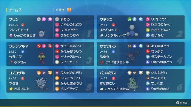 構築の中心。とにかく耐えて、いやしのはどうを連発して相方を長持ちさせる。たぶんSは後攻いやしのはどうを安定させるのとトリックルーム時にアドバンテージを取るため最遅が良いと思うけど、厳選してない。